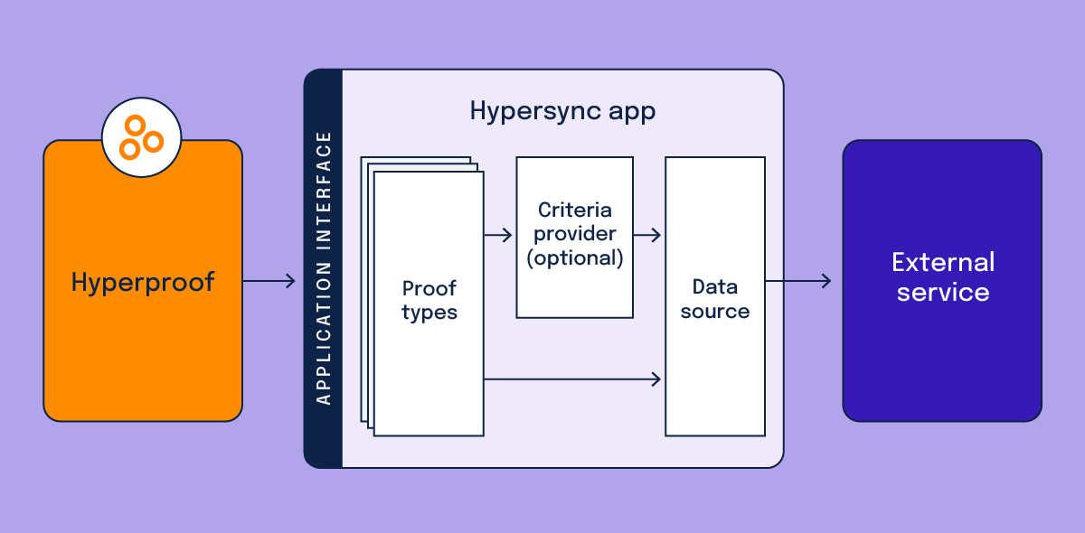 A Hypersync app is a Node.js module that connects to an external service, retrieves data, and formats it so it can be imported into Hyperproof as proof. Each Hypersync app follows a defined structure designed to integrate seamlessly within the Hyperproof ecosystem.
